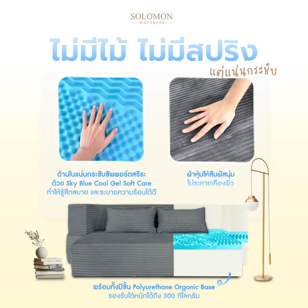 คุณสมบัติเหล่านี้ช่วยให้ไม่ว่าจะใช้งานในรูปแบบโซฟาหรือเตียง ก็ยังคงความสบายอย่างสม่ำเสมอ