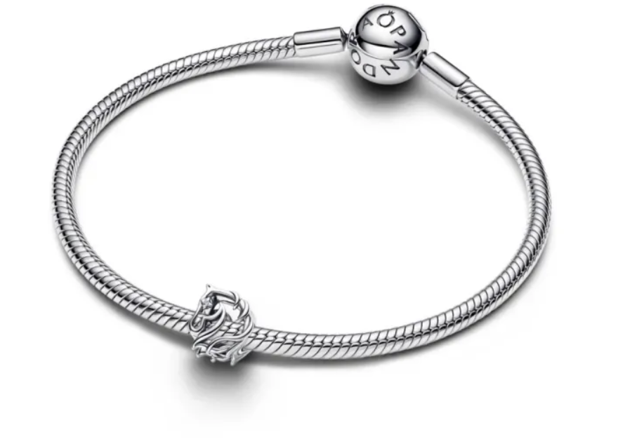 ในอีกมุมหนึ่ง Pandora Horse Openwork Charm ถ่ายทอดสัญลักษณ์ของม้าในแบบที่เรียบ สุขุม และคลาสสิก ตัวชาร์มออกแบบด้วยเทคนิค Openwork หรือโครงโปร่ง ทำให้เห็นลวดลายม้าอย่างชัดเจน แต่ไม่หนักหรือทึบ