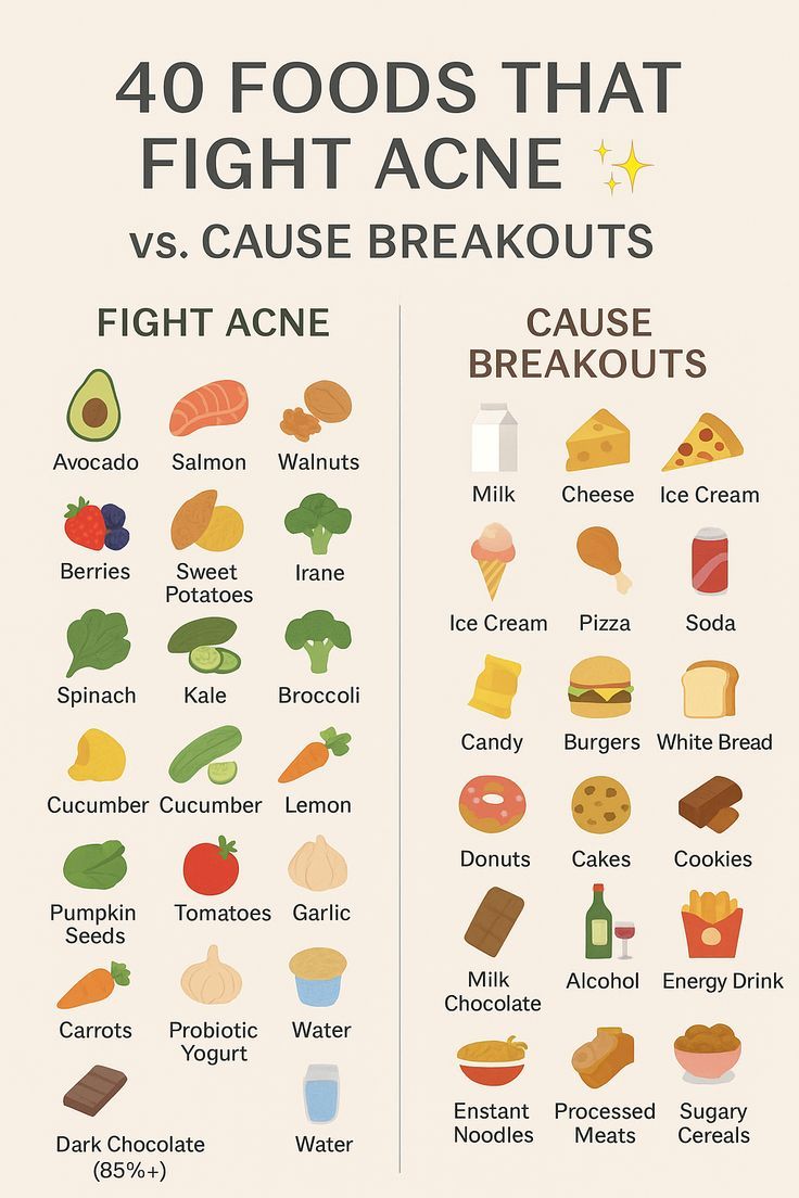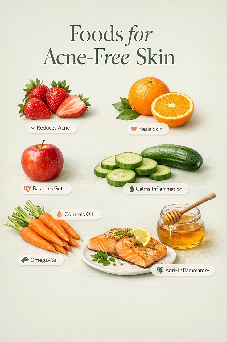 กินให้ครบ 5 หมู่ และหลีกเลี่ยงการกินเมนูเดิมซ้ำ ๆ เพื่อให้ร่างกายได้รับสารอาหารหลากหลาย รวมถึงวิตามิน แร่ธาตุ และใยอาหารที่มีผลต่อผิว