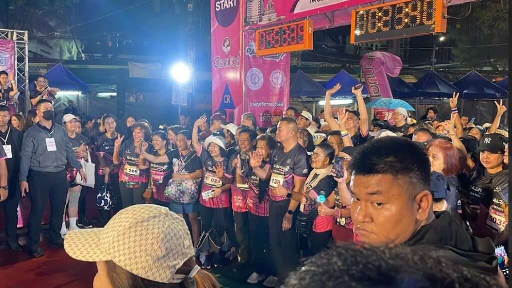 เวลาไล่เลี่ยตีสี่ครึ่ง บริเวณวงเวียนอนุสาวรีย์ชัยสมรภูมิและหน้าประตู 3 โรงพยาบาลราชวิถี ค่อย ๆ ถูกเติมเต็มไปด้วยเสียงพูดคุย เสียงเชียร์ และการวอร์มร่างกายของนักวิ่งทุกเพศทุกวัย