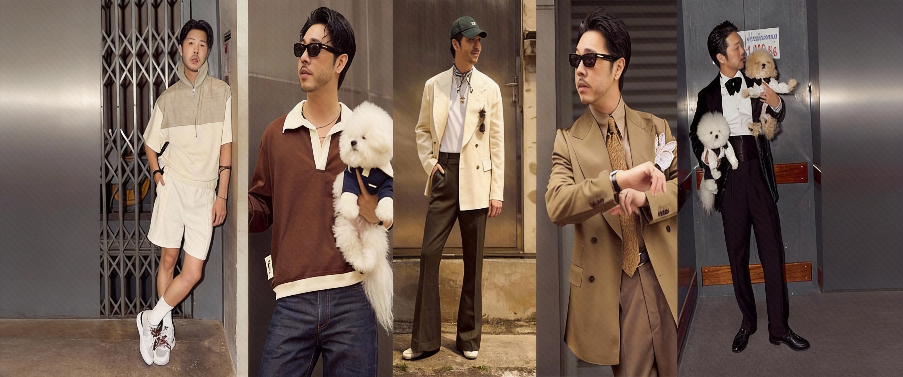 สุดท้าย ไม่ว่าคุณจะเลือกเป็นสายสูทเต็มยศ สาย casual ใส่ยีนส์กับโปโล หรือสายเดินเล่นกับหมาแบบใส่ชุดเข้าคู่กัน สิ่งที่สำคัญที่สุดก็ยังคือคำเดียวกับที่แบงค์ใช้ – สนุก กับการแต่งตัว และสนุกกับการเป็นตัวเองในทุกลุคที่คุณเลือกใส่.