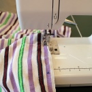 พับขอบตามแนวยาวเข้าไป แล้วเย็บด้วยจักรให้แน่น