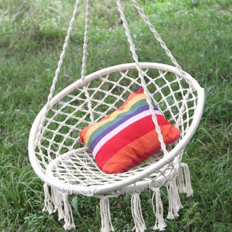 เปลญวนทรงกลมแบบนี้เหมาะมากสำหรับแต่งกระท่อมพักผ่อน สวนหลังบ้าน หรือเฉลียง ให้บรรยากาศสดใสและดูเป็นกันเองขึ้นทันตา