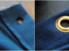 เจาะรูห่างกันประมาณทุก 10 ซม. บริเวณด้านข้างของผ้า เส้นผ่านศูนย์กลางรูควรพอดีกับเชือกที่ใช้ร้อย
