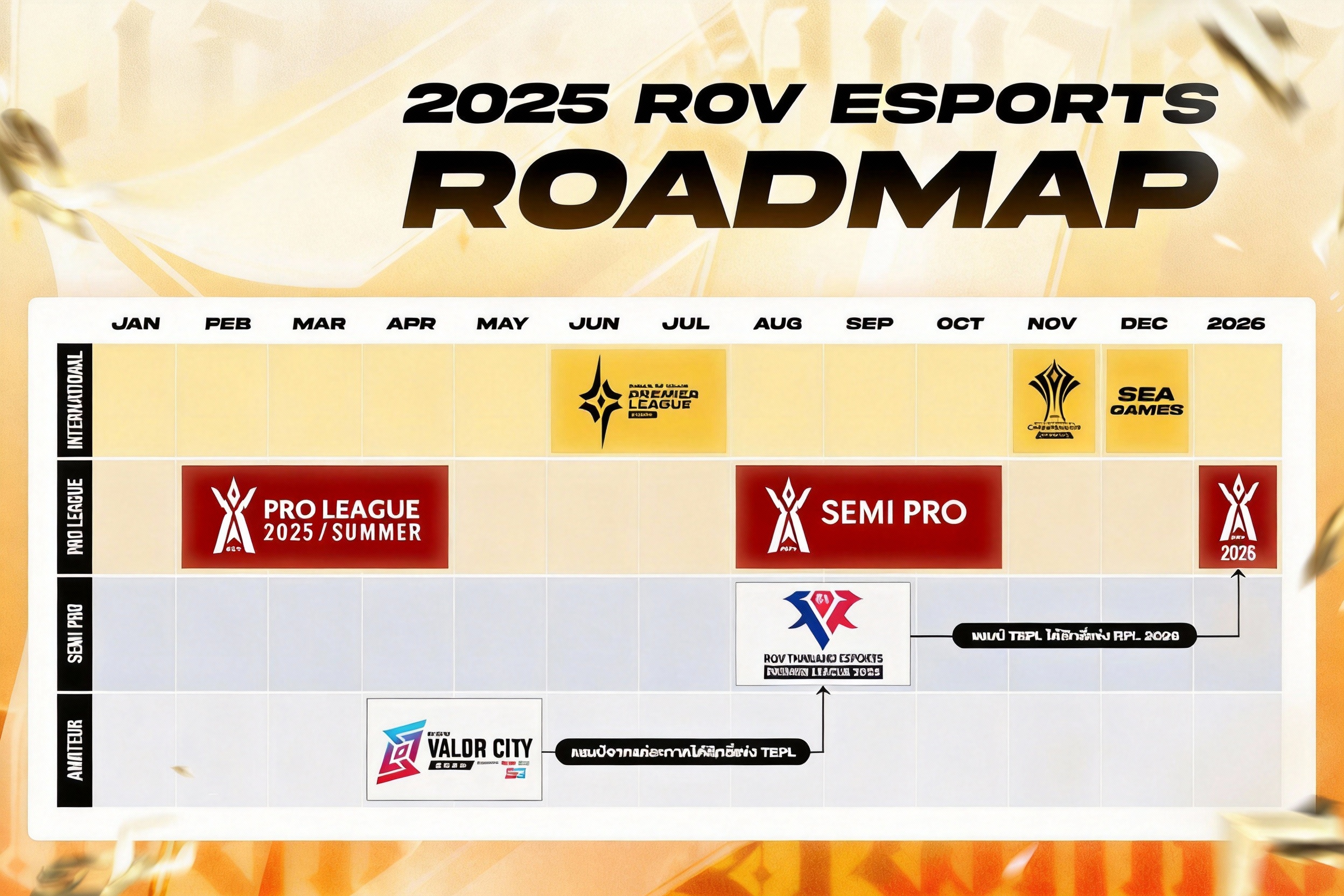 ในปี 2025 นี้ RoV Esports ก้าวเข้าสู่ปีที่ 9 เติบโตเคียงข้างวงการอีสปอร์ตไทยมาตลอด และยังคงเดินหน้าขยายเส้นทางอาชีพให้ผู้เล่นทุกระดับได้มีเวทีในการพัฒนา ฝึกปรือ และก้าวไปลุยในระดับโลกอย่างจริงจัง