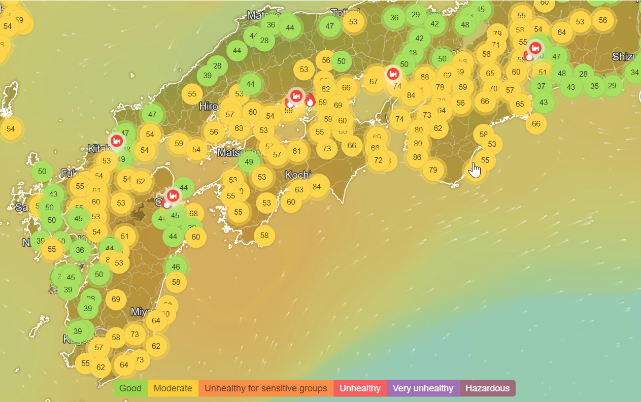 คุณภาพอากาศโดยรอบภาคใต้ของญี่ปุ่นในช่วงหลังการปะทุมีฝุ่นเถ้ากระจายวงกว้าง การติดตามข้อมูลคุณภาพอากาศจึงเป็นเรื่องสำคัญ ทั้งสำหรับคนท้องถิ่นและผู้ที่มีแผนเดินทางท่องเที่ยว