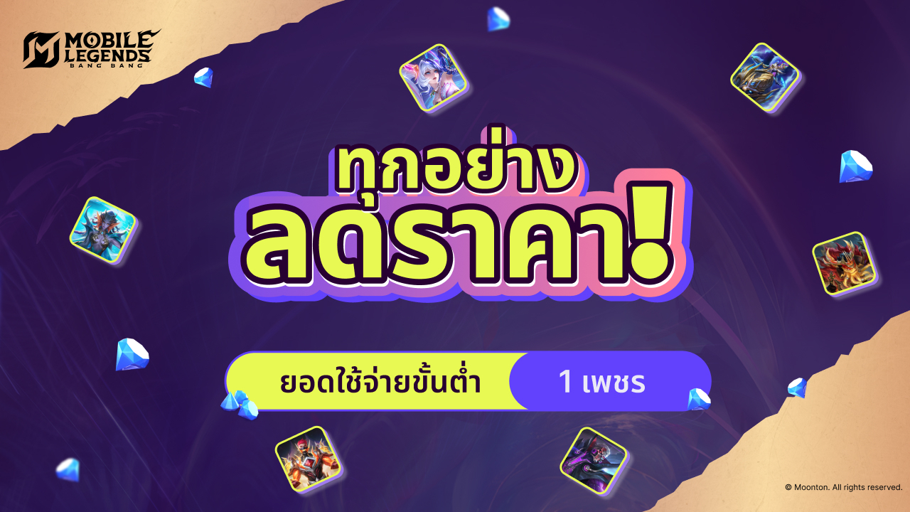 ไม่ว่าคุณจะเป็นสายเมนฮีโร่ตัวเดียวแล้วใส่สกินจัดเต็ม หรือเป็นสายลองฮีโร่หลายตัวพร้อมสกินครบทุกโรล งาน Mega Sale รอบนี้จะช่วยให้ทุก Diamond ที่คุณใช้ มีมูลค่ามากกว่าปกติหลายเท่า