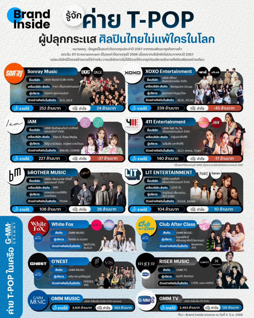 ยังไม่ได้รวบรวมข้อมูลจากทุกบริษัทในอุตสาหกรรม T-POP ทั้งหมด