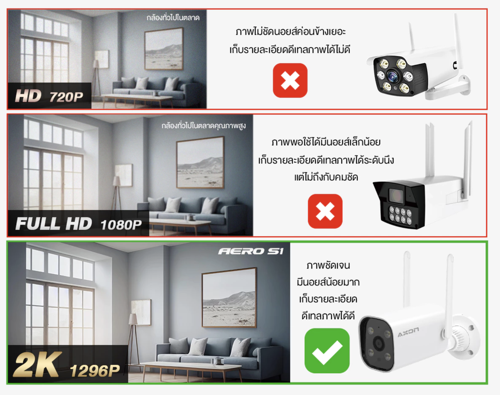 AXON Aero S1 ถูกออกแบบให้ให้ความคมชัดระดับสูง พร้อมระบบลด Noise ช่วยให้ภาพตอนกลางคืนไม่แตกเป็นเม็ด ๆ