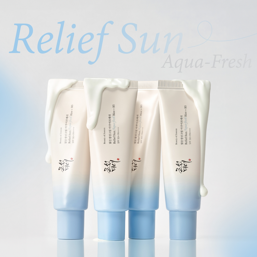 Beauty of Joseon RELIEF SUN AQUA-FRESH RICE+B5 SPF50+ PA++++ เป็นกันแดดที่เน้นความบางเบา เกลี่ยง่าย และให้ความชุ่มชื้นในแบบที่ไม่เพิ่มความมัน เหมาะมากกับผู้ที่ต้องการกันแดดสำหรับอากาศร้อนชื้นและผิวมัน–ผิวผสม รวมถึงผู้ที่ต้องการสูตรที่มีส่วนผสมปลอบประโลมผิว ไม่ระคายเคือง และใช้งานได้ทุกวัน เนื้อ Aqua-fresh ช่วยให้เมคอัพติดดี ไม่เป็นคราบ และให้ลุคผิวสุขภาพดีแบบธรรมชาติ