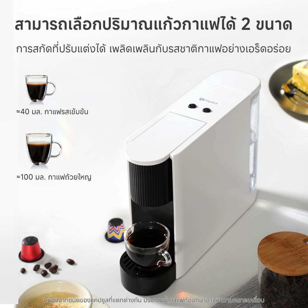 เครื่องไซซ์มินิ แต่ฟังก์ชันจัดเต็ม เหมาะกับทั้งบ้าน คอนโด หอพัก และออฟฟิศขนาดเล็ก ที่ต้องการกาแฟคุณภาพดีในเวลาไม่กี่วินาที