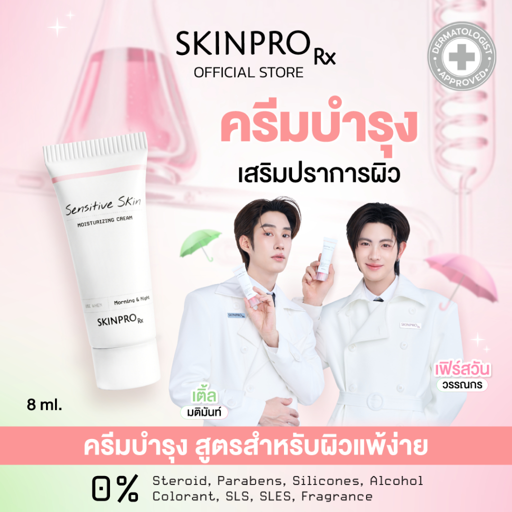 2. ผิวบอบบาง–แพ้ง่าย: Sensitive Skin Moisturizing Cream (สีชมพู)