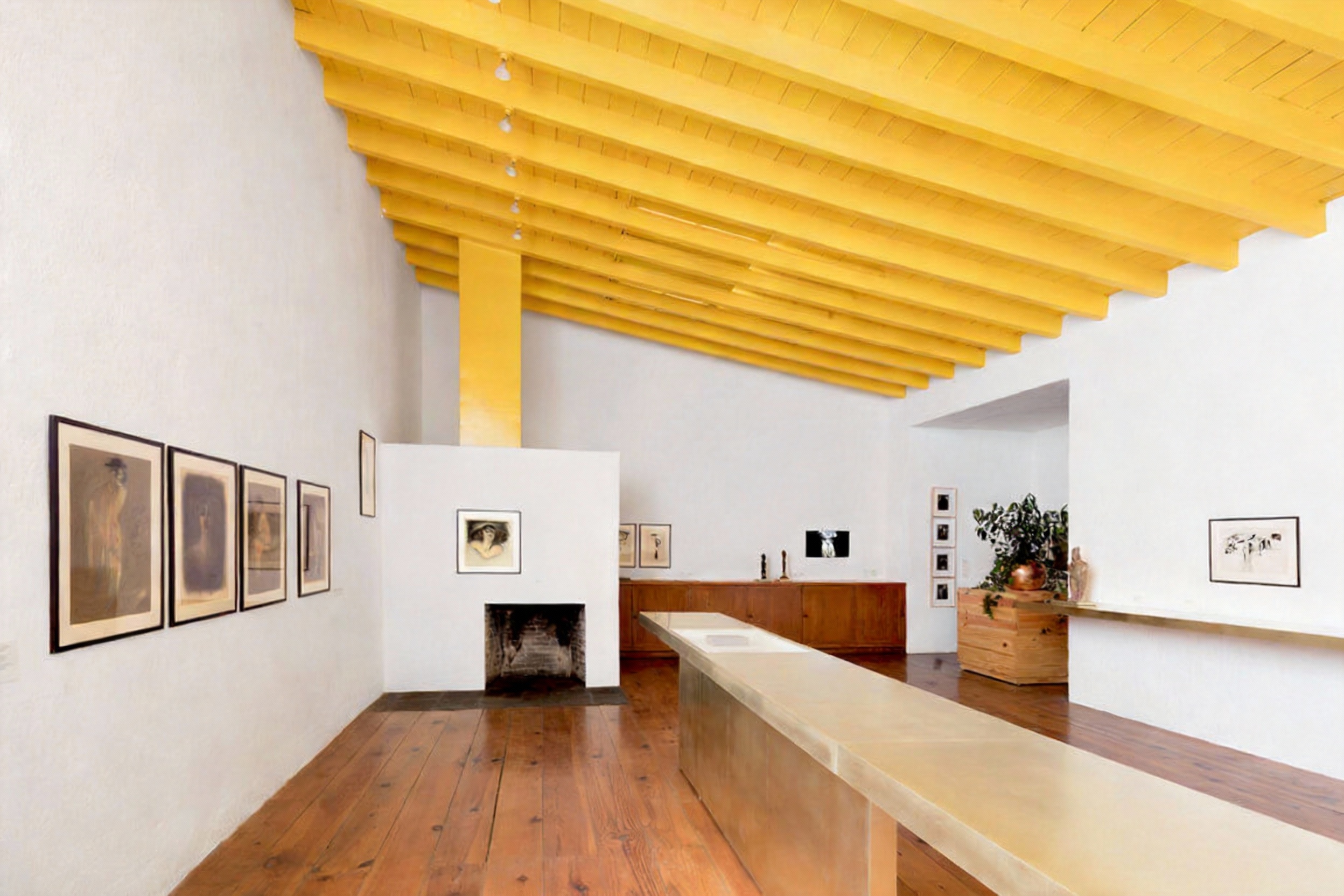หน้าต่างห้องนั่งเล่นกรอบเป็นรูปไม้กางเขน ชี้ชัดถึงความผูกพันระหว่างความศักดิ์สิทธิ์และการใช้ชีวิตประจำวัน