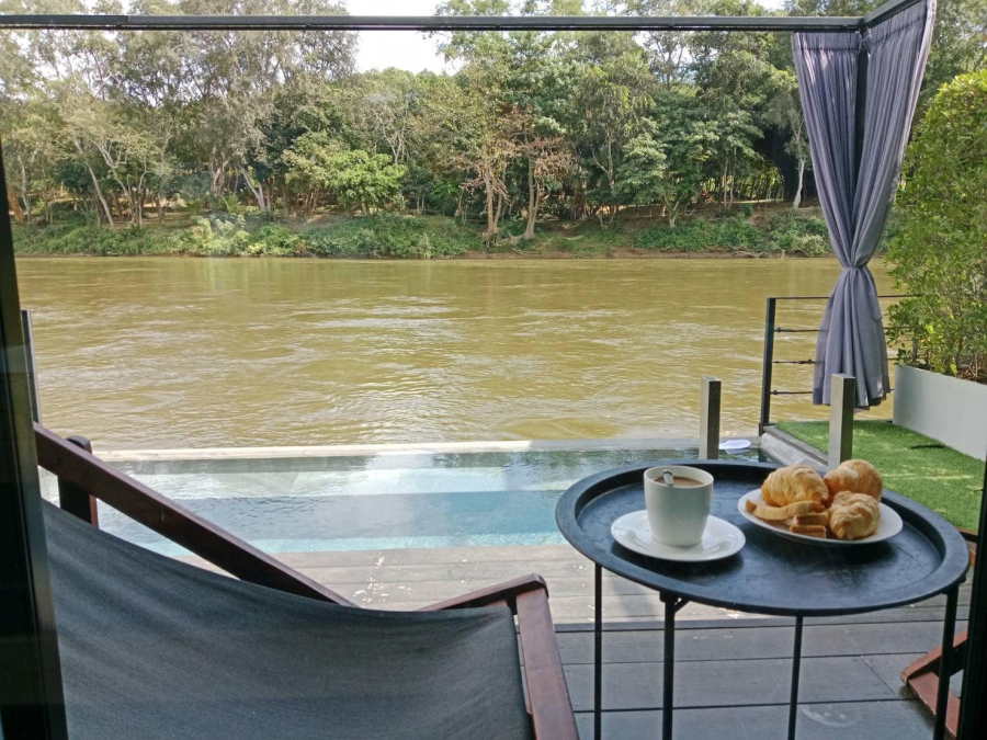 ห้อง Panoramic River Vibe คือหนึ่งในตัวท็อปของที่นี่ เพราะเป็นห้องแพที่ตั้งอยู่ทางด้านซ้ายและหันหน้าออกสู่แม่น้ำแบบเต็ม ๆ ได้วิวพาโนรามา 180 องศา ชนิดที่ตื่นมาก็เจอสายน้ำทันที
