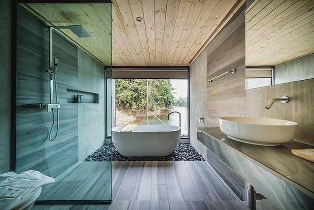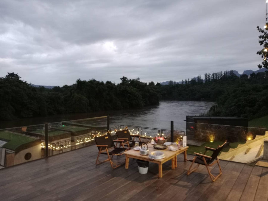 บ้านพักแบบแพริมน้ำ มองเห็น สายน้ำ ภูเขา และต้นไม้ ครบทุกองค์ประกอบของธรรมชาติ บรรยากาศโรแมนติกและสงบแบบยากจะลืม