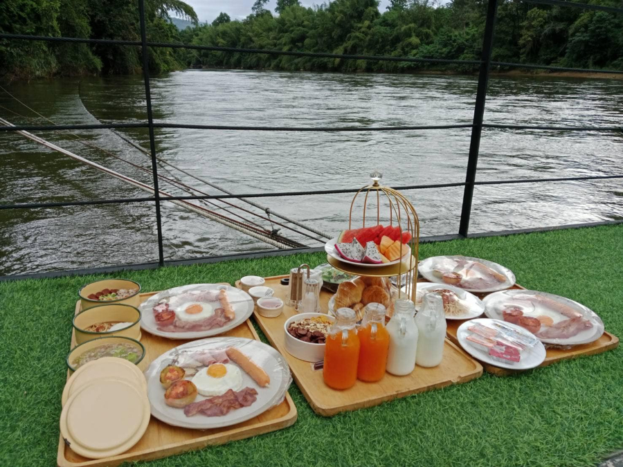 นอกจากวิวแม่น้ำแควน้อยแล้ว สีเขียวของภูเขาและต้นไม้รอบ ๆ ยังช่วยเพิ่มความรู้สึกสดชื่น จนหลายคนกลับบ้านไปแล้วยังแอบคิดถึงบรรยากาศที่นี่อยู่เลย