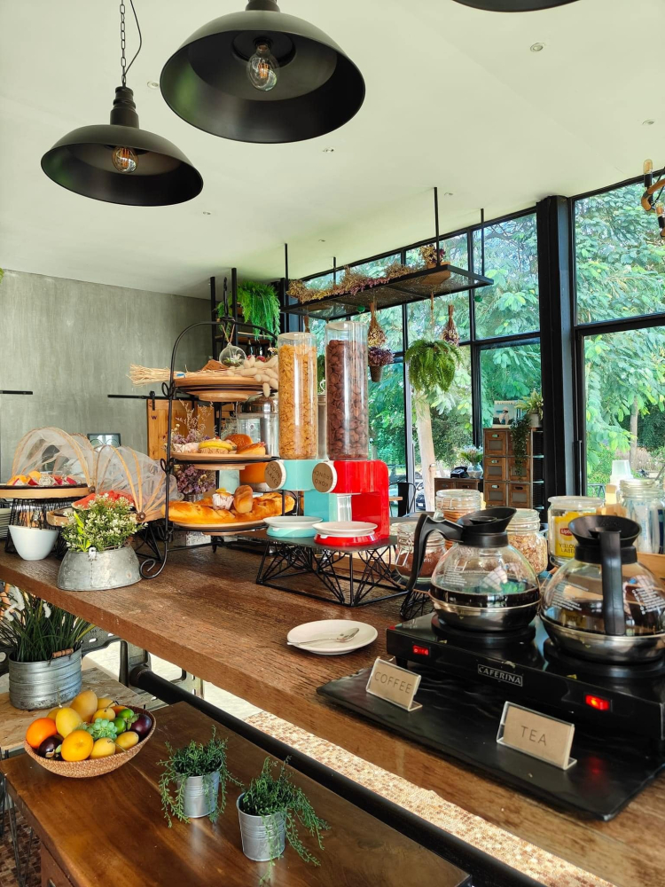 ที่นี่ทำหน้าที่เป็นทั้งห้องอาหารและคาเฟ่เล็ก ๆ ใครไม่ได้เข้าพักก็สามารถแวะมาถ่ายรูป นั่งจิบกาแฟ กินขนมอร่อย ๆ ได้เช่นกัน