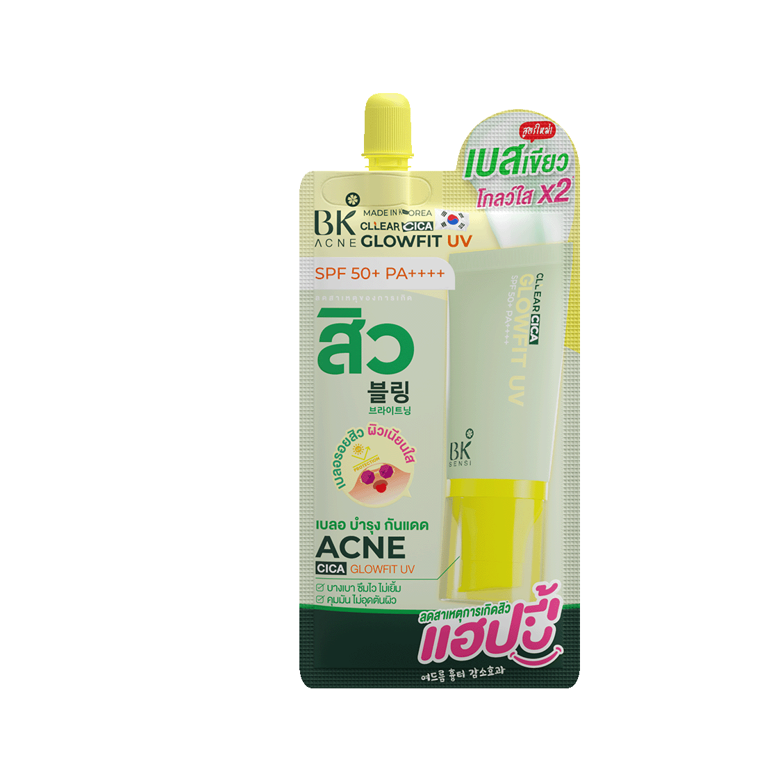 BK Acne Clear Cica Glowfit UV ไม่ได้เป็นแค่เมคอัพเบสธรรมดา แต่เป็น เบสเขียวมัลติฟังก์ชั่น ที่รวมฟังก์ชันเด็ดไว้ในหลอดเดียว