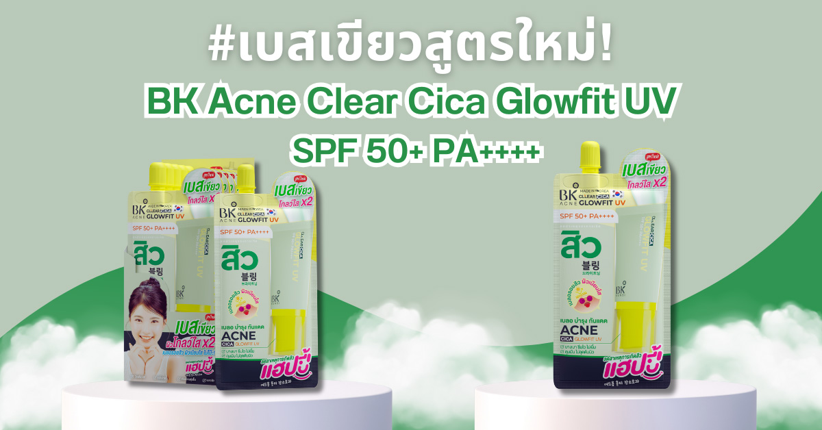 ถ้าอยากได้ผิวเนียนกริ๊บในไม่กี่วินาที แบบทั้ง กันแดด + เบลอผิว + หน้าโกลว์ใส ในหนึ่งเดียว เบสเขียวสูตรใหม่อย่าง BK Acne Clear Cica Glowfit UV SPF 50+ PA++++ คือไอเทมที่ควรมีติดโต๊ะเครื่องแป้งสุดๆ