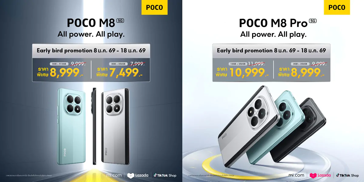 POCO M8 Series มือถือสายเอ็นเตอร์เทนราคาเริ่มไม่ถึงหมื่น