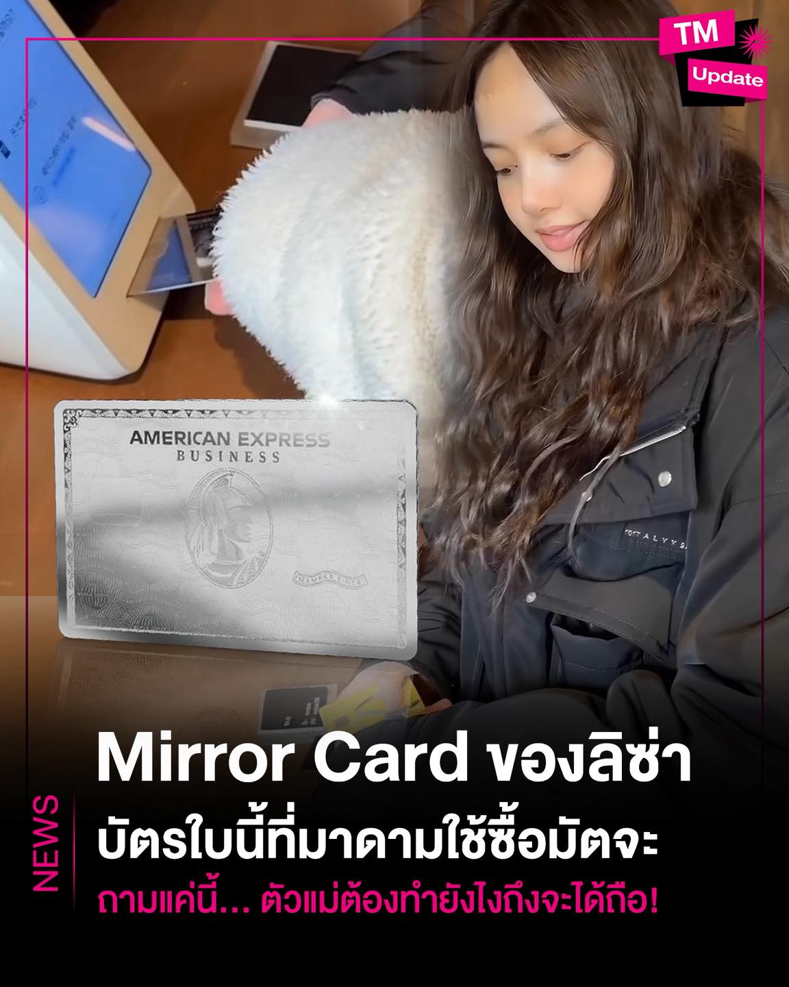 ทุกการเคลื่อนไหว ทุกดีเทลของลิซ่า มักกลายเป็นบทสนทนาในโลกออนไลน์เสมอ — และหนึ่งในดีเทลที่ถูกพูดถึงมากที่สุดคือ บัตรเครดิต American Express Platinum Mirror