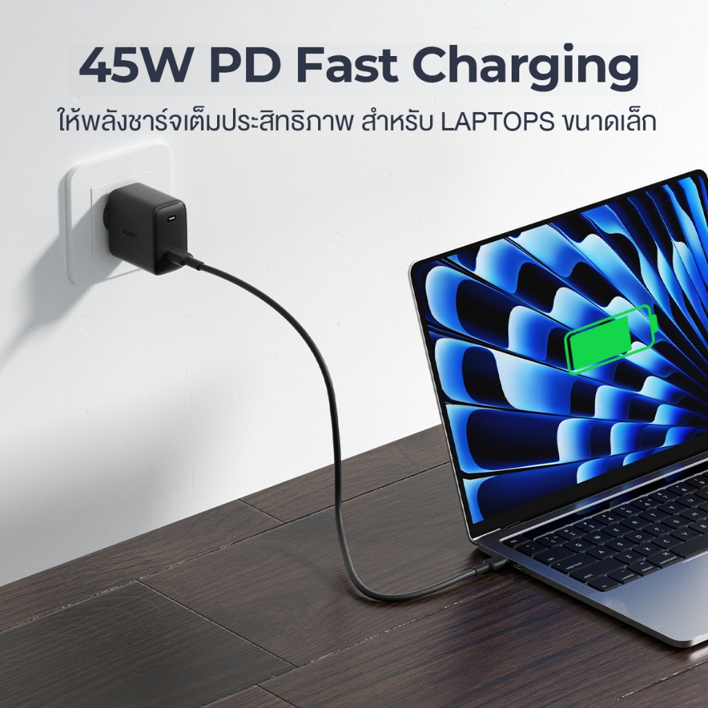 ตัวเลข 45W อาจดูไม่หวือหวาเท่าหัวชาร์จ 65W หรือ 100W แต่ในทางปฏิบัติถือว่าเป็นจุดสมดุลที่ดีมาก