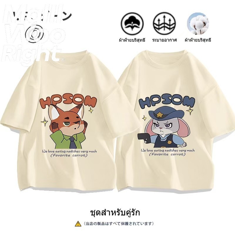1. เสื้อยืดคู่รัก เสื้อยืด Zootopia ผ้า Cotton 100%
