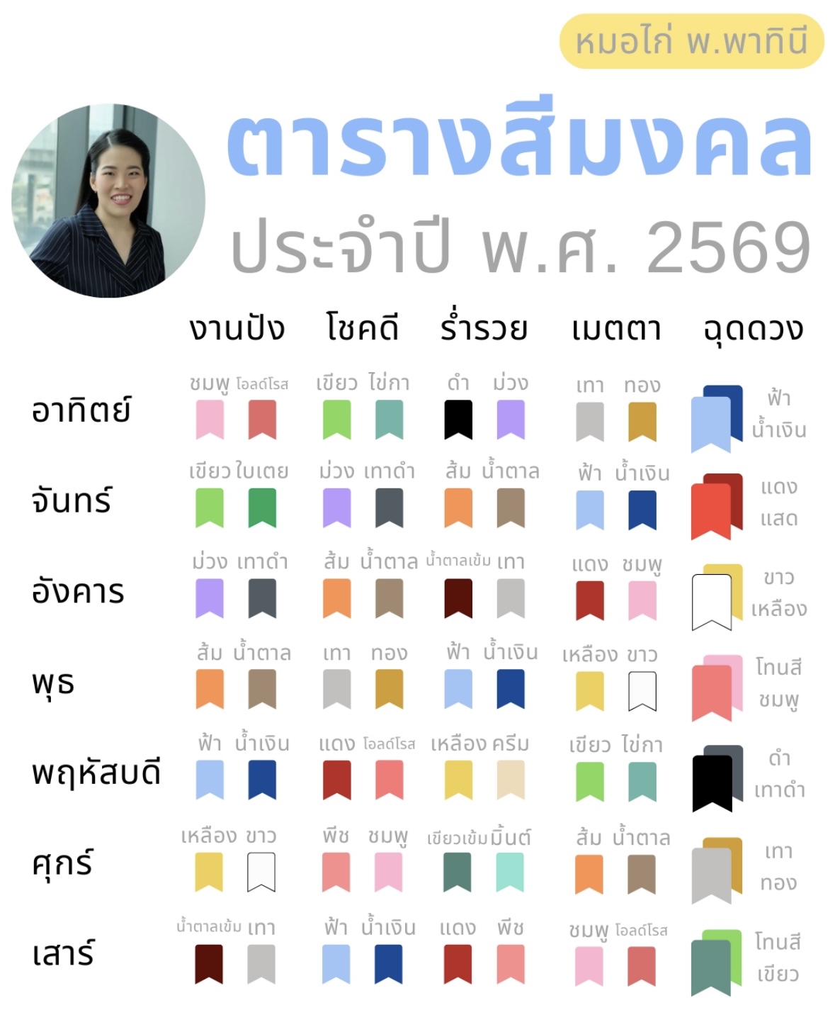 อย่างไรก็ตาม ความเชื่อเป็นเพียงส่วนหนึ่ง สิ่งสำคัญที่สุดยังคงเป็น ความตั้งใจ ความพยายาม และการลงมือทำ เมื่อพลังใจและพลังสีมงคลเดินไปด้วยกัน ปี 2569 ก็อาจเป็นปีแห่งโอกาสดี ๆ ที่คุณรอคอย