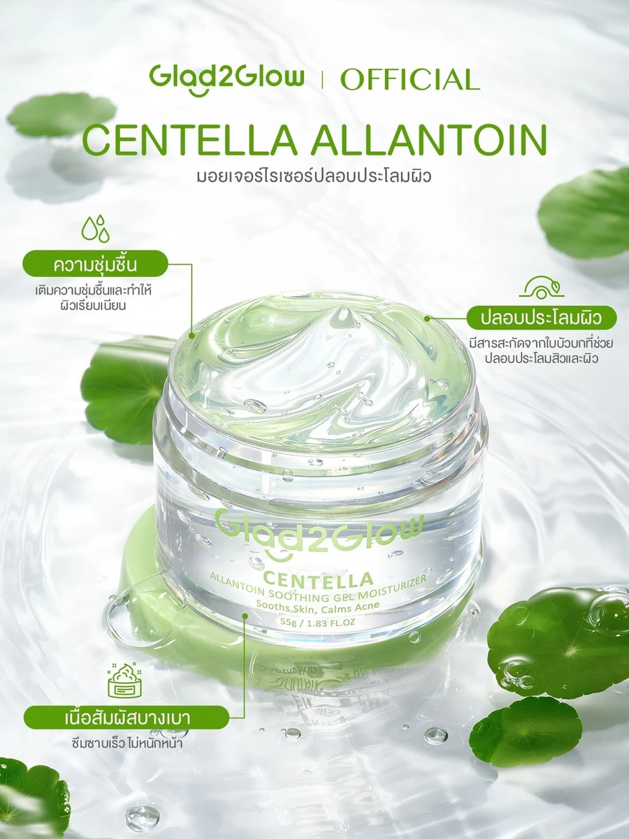 แล้วก็ได้ลอง Glad2Glow Centella Soothing Gel Moisturizer เจลใบบัวบกเนื้อใส ๆ