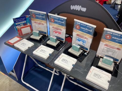 ภายในบูธ ผู้เข้าชมสามารถสำรวจบริการและคอนเทนต์ของ NHK WORLD-JAPAN ที่รับชมได้จากทั่วโลก ไม่ได้จำกัดแค่ในประเทศไทยเท่านั้น
