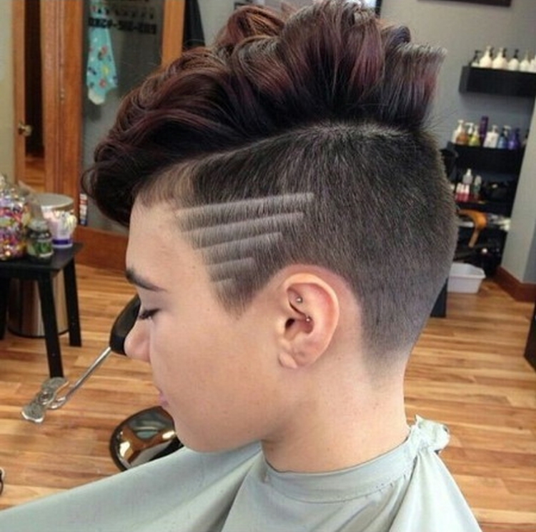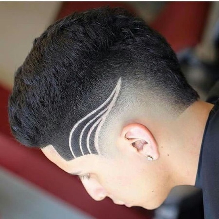 จุดยอดนิยมสำหรับโกนลายคือด้านหลังศีรษะและบริเวณขมับ