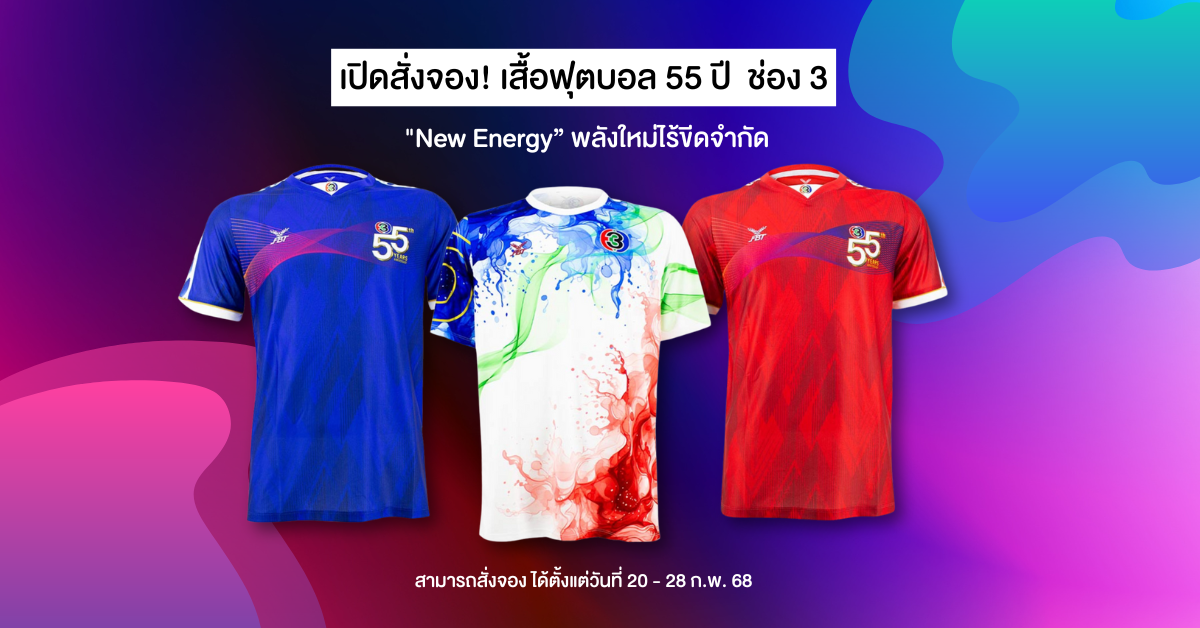 มหกรรมฟุตบอลช่อง 3 “55 ปี New Energy” พลังใหม่ไร้ขีดจำกัด กำลังจะมาถึง และเสื้อฟุตบอล 55 ปี ช่อง 3 ก็คือไอเทมประจำงานที่ควรมีติดตู้