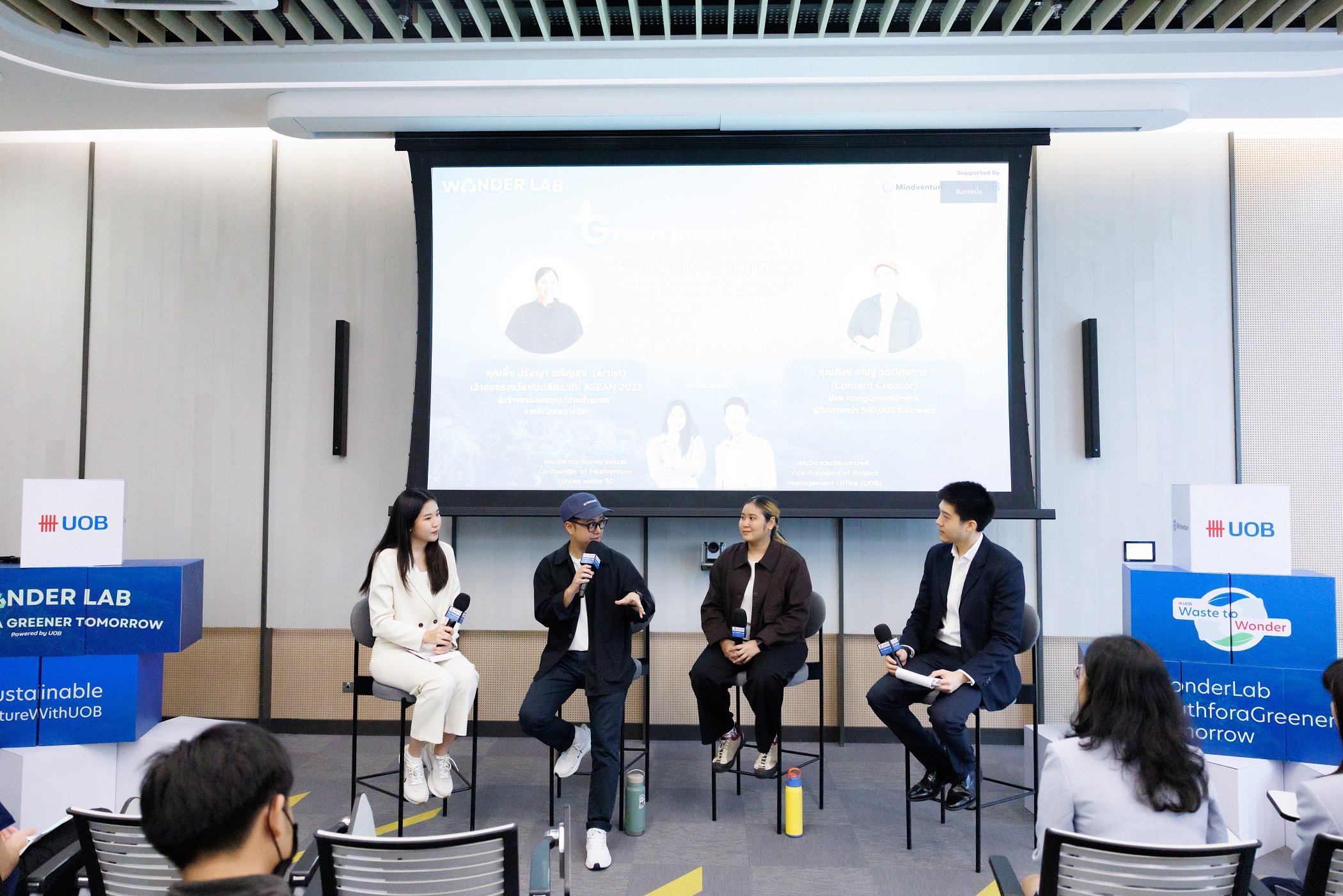 ผู้บริหารจากยูโอบีมองว่า Wonder Lab คือภาพสะท้อนของพลังคนรุ่นใหม่ที่ไม่รอโอกาส แต่ลุกขึ้นมาสร้างมันเอง แนวคิดเรื่องความยั่งยืนในวันนี้ จึงถูกผูกโยงเข้ากับอนาคตของชุมชนและประเทศไปพร้อมกัน
