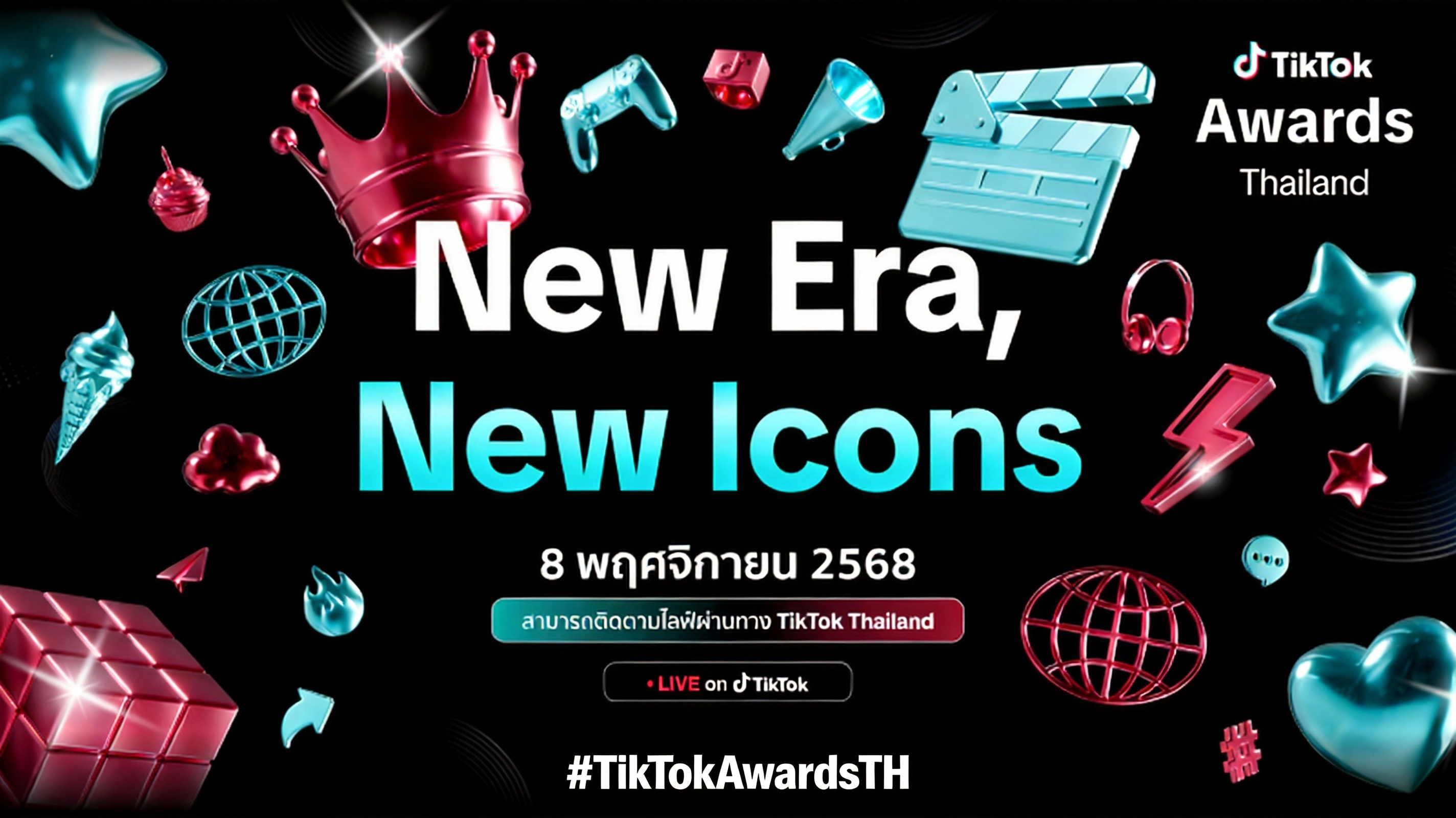 เวที TikTok Awards 2025 กลับมาอีกครั้งแบบยิ่งใหญ่กว่าเดิม พร้อมพาเราเข้าสู่ยุค “New Era, New Icons” ที่ครีเอเตอร์ไม่ได้เป็นแค่คนทำคอนเทนต์ แต่กลายเป็นไอคอนตัวจริงของวัฒนธรรมยุคดิจิทัล
