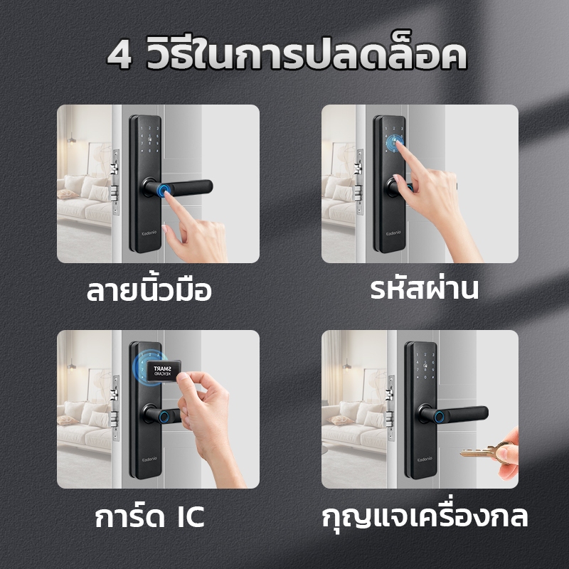 เพื่อความสะดวกสูงสุด สมาร์ทล็อครุ่นนี้รองรับการปลดล็อกหลายวิธี เช่น รหัสผ่าน ลายนิ้วมือ การ์ด และกุญแจสำรอง ช่วยให้การเข้าออกบ้านเป็นเรื่องง่ายขึ้น ไม่ต้องพกกุญแจให้ยุ่งยาก