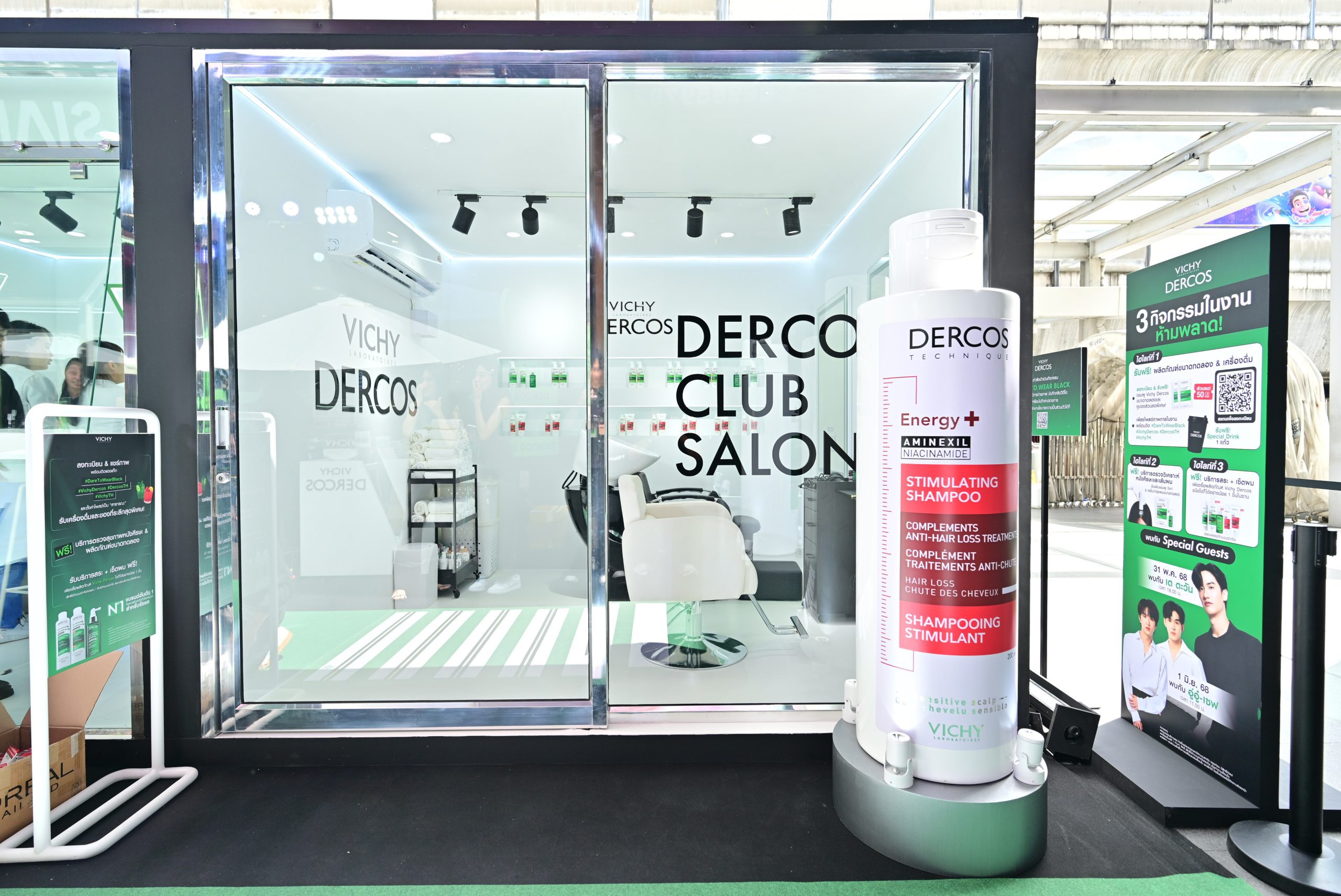 ภายในงานถูกออกแบบให้เข้ากับคอนเซ็ปต์ “Dare to Wear Black” ผ่านการจับคู่สีดำกับสีเขียวอันเป็นเอกลักษณ์ของ Vichy Dercos พื้นที่แต่ละโซนถูกจัดสรรให้ทั้งสนุก ถ่ายรูปสวย และได้ความรู้เรื่องเส้นผมไปพร้อมกัน