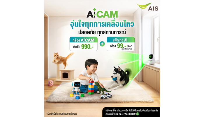 เอไอเอสยกระดับจากแค่กล้องวงจรปิดธรรมดา ไปสู่การเป็น ผู้ช่วยอัจฉริยะในชีวิตประจำวัน (AI for Everyday Living) ผ่านกล้องอัจฉริยะ AiCAM ที่ออกแบบมาสำหรับบ้านยุคดิจิทัล