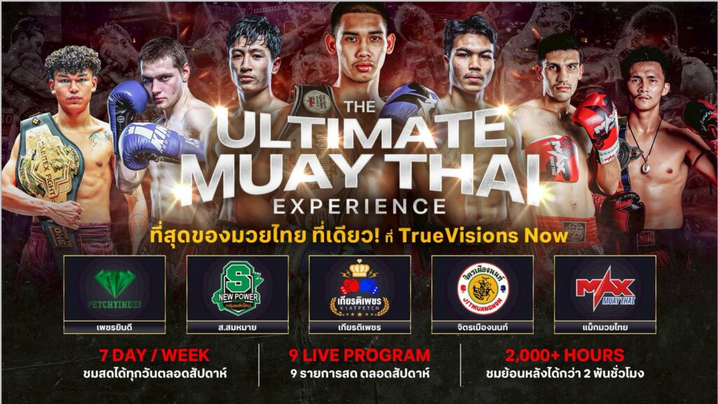 คอเกมกีฬาและแฟนมวยต้องร้องว้าว เพราะ TrueVisions Now เตรียมเสิร์ฟ สิทธิ์ถ่ายทอดสดมวยไทยมากถึง 536 นัด จาก 9 รายการ รวมแล้วกว่า 2,144 คู่ชก ออกอากาศครบทั้ง 7 วันต่อสัปดาห์ ตลอดทั้งปี