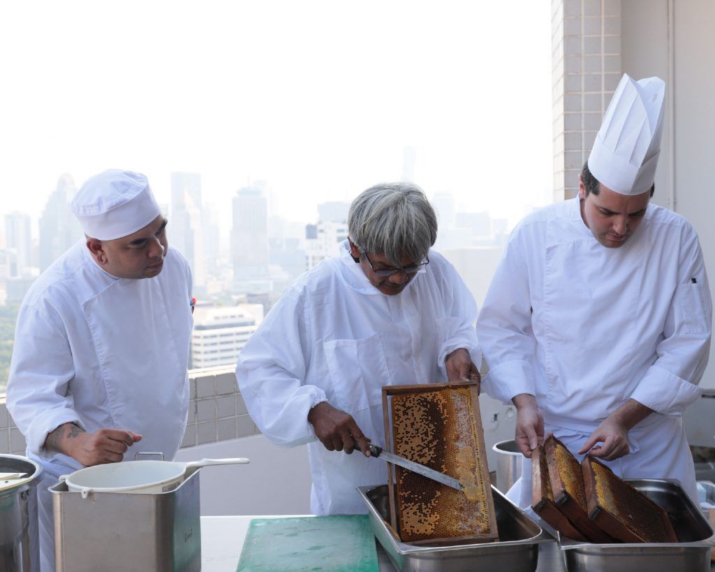 ทุกเมนูที่ใช้น้ำผึ้งจากสวนบนดาดฟ้า จึงเป็นเหมือนสื่อกลางเล่าแนวคิดด้านความรับผิดชอบต่อสังคมและสิ่งแวดล้อมของโรงแรม