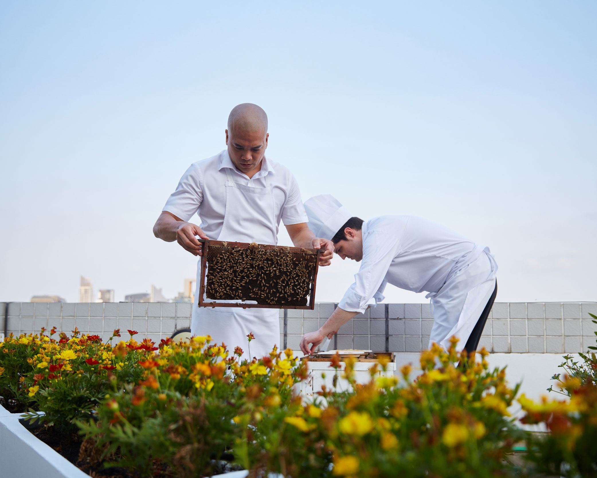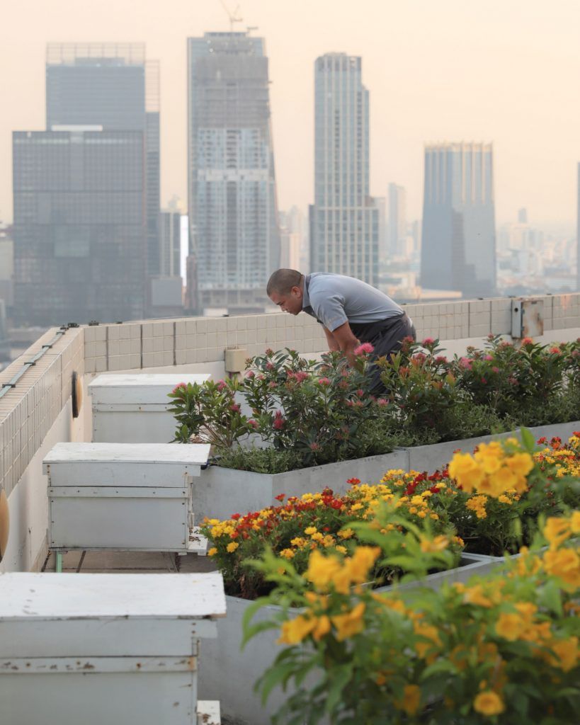 สวนผึ้งบนดาดฟ้าแห่งนี้ถูกออกแบบให้เป็นทั้งแหล่งผลิตน้ำผึ้งออร์แกนิก และพื้นที่ตัวอย่างที่สะท้อนแนวคิดการพัฒนาธุรกิจโรงแรมอย่างรับผิดชอบต่อสิ่งแวดล้อมและชุมชนรอบข้าง