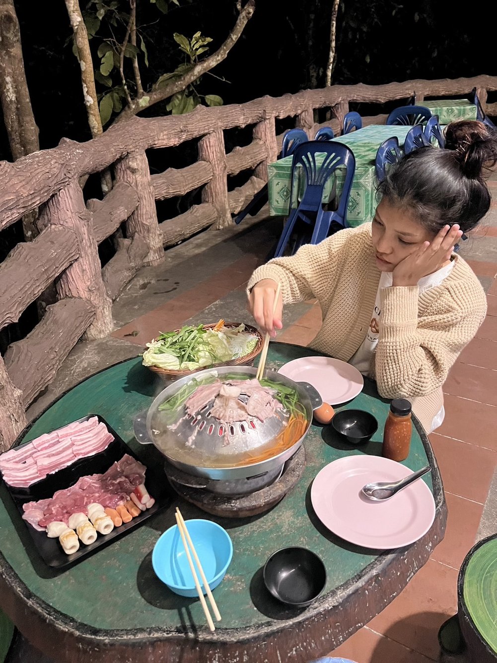 ไฮไลต์คือหมูกะทะในอากาศเย็นๆ บนดอย บอกเลยว่าเข้ากันสุดๆ ทั้งอร่อย ทั้งอุ่นท้อง นั่งกินไปสูดลมหนาวไปคือดีมาก