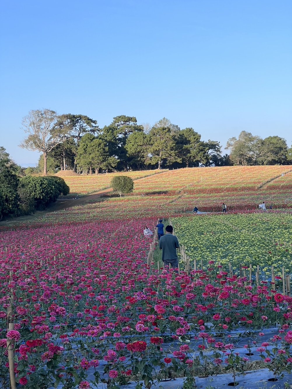 ทริปนี้มีเซอร์ไพรส์แบบไม่ได้นัดหมาย เพราะเราไปช่วงปลายเดือนธันวาคม พอดีกับที่ สวนพนาวัตร เปิดให้เข้าชมทุ่งดอกบานชื่นที่ปลูกเรียงกันหลายไร่แบบสลับสีสวยมาก