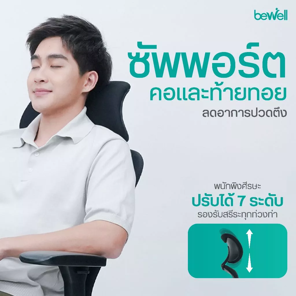 เกือบทุกรุ่นหลักของ Bewell ใช้ Lumbar Support เป็นหัวใจสำคัญในการออกแบบ เพื่อช่วยโอบรับหลังส่วนล่างให้โค้งรับแนวกระดูกสันหลังอย่างเหมาะสม