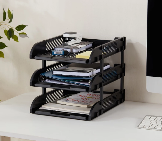ชั้นวางเอกสารคืออุปกรณ์จัดระเบียบบนโต๊ะทำงานที่ถูกออกแบบมาเพื่อจัดกลุ่มเอกสารตามหมวดหมู่ ทำให้ค้นหาได้ง่าย และช่วยให้ทุกอย่างวางเป็นลำดับชัดเจน โดยมีให้เลือกหลายแบบ เช่น