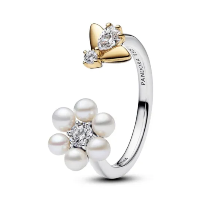 1. Pandora Bridgerton Bee & Treated Freshwater Cultured Pearl Flower Open Ring