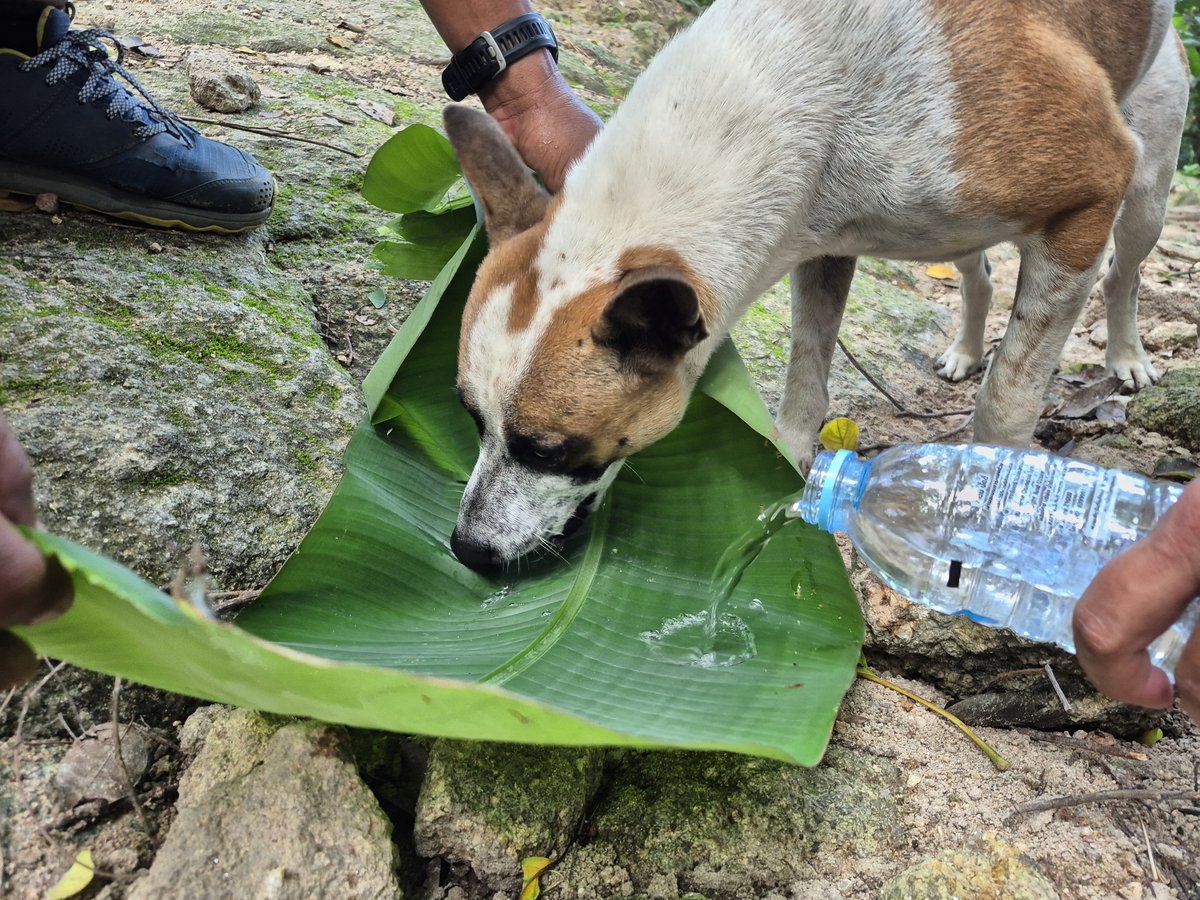 ด้วยความใจอ่อนเลยแบ่งน้ำให้ขจรศักดิ์ไปครึ่งขวด ซึ่งสำหรับนักวิ่งเทรลแล้ว น้ำคือของโคตรล้ำค่า แต่เห็นลิ้นห้อย ๆ แล้วให้เฉย ๆ ไม่ได้จริง ๆ