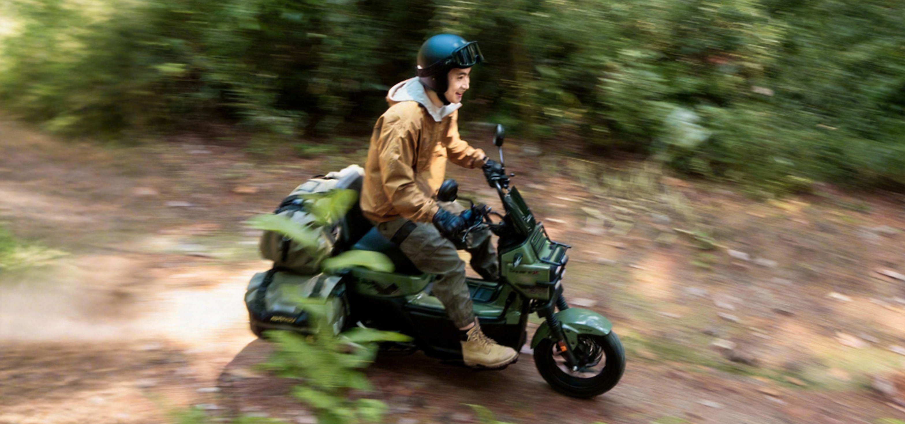 ระบบกันสะเทือนช่วงยุบสูง รองรับการขี่บนทางฝุ่น ทางขรุขระ หรือเส้นทางท่องเที่ยวธรรมชาติได้สบายกว่า สกู๊ตเตอร์เมืองทั่วไป