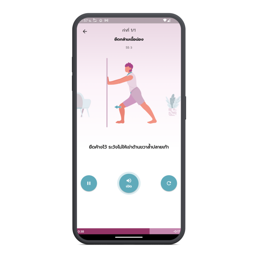 ท่าที่ 1: นั่งยืดน่อง แก้ตะคริวกินน่องและตะคริวที่เท้า