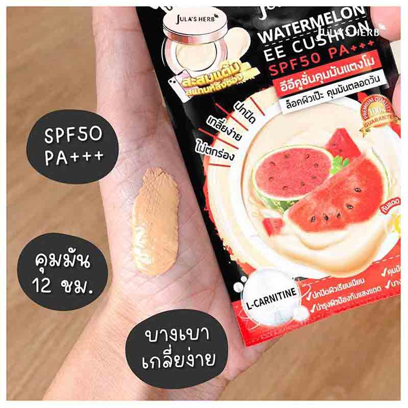 อีอีคุชชั่นแตงโมจาก Jula’s Herb ตัวดัง เนื้อแมตต์แต่ให้ฟินิชผิวสวย ไม่แบน ไม่ดรอประหว่างวัน มาพร้อมการปกปิดที่เนียนสนิททั้งรอยดำ รอยแดง และรูขุมขน
