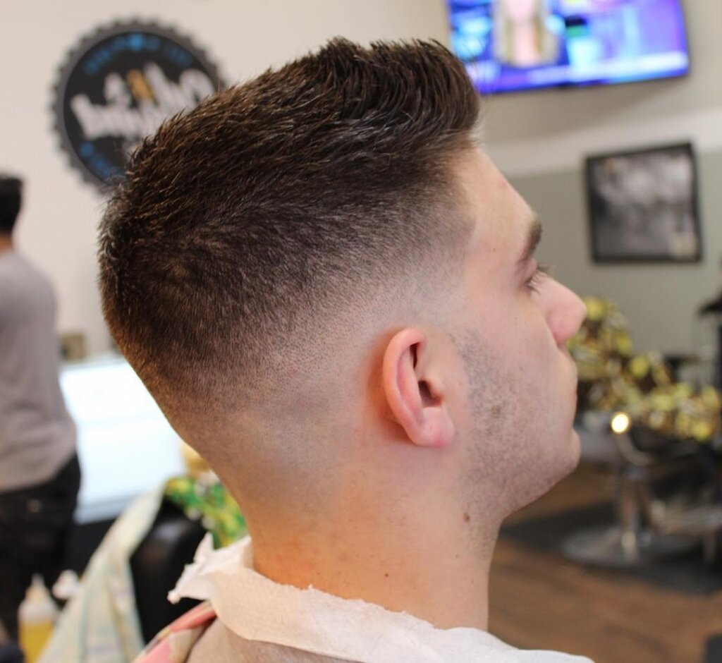 ด้านข้างและด้านหลังจะถูกไถสั้นมาก อาจเพิ่มลายต่าง ๆ ที่วัดเพื่อความโดดเด่น ส่วนความยาวของมงกุฎจะเลือกตามสไตล์ของเจ้าของหัว ทรงนี้เหมาะทั้งหนุ่มวัยมหาลัยไปจนถึงวัยทำงานที่อยากได้ลุคเท่แต่ยังดูเนี้ยบ